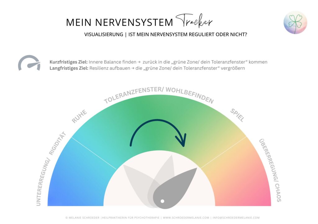 Der Nervensystem-Tracker unterstützt dich dabei, deine aktuelle Balance bewusster wahrzunehmen. So kannst du kurzfristig in dein Toleranzfenster zurückfinden und langfristig deine Resilienz stärken.